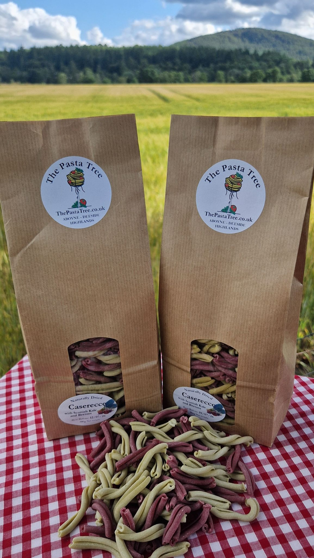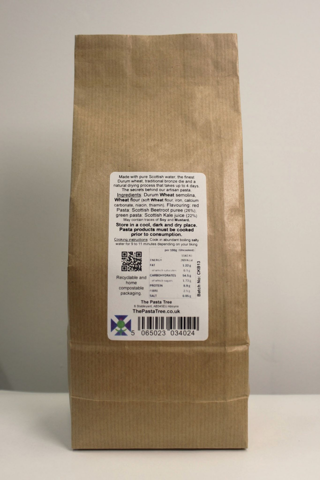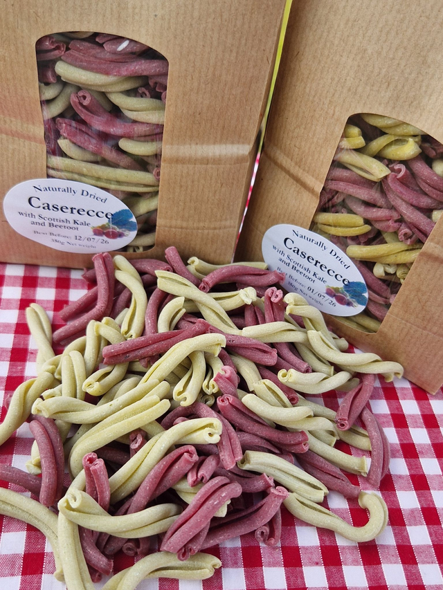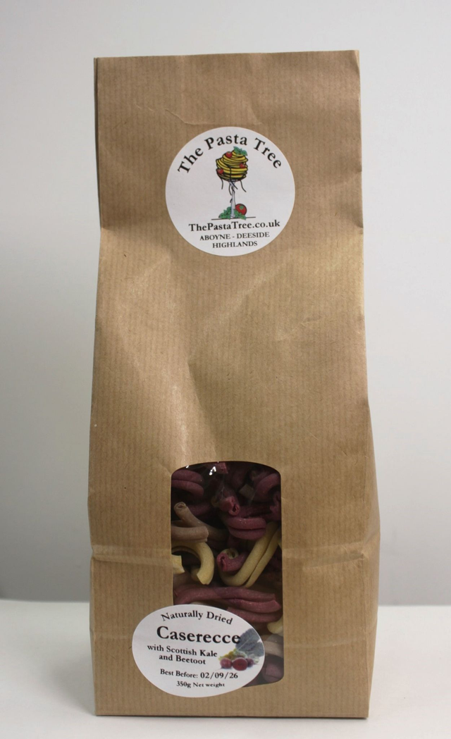 Our Casarecce is naturally dried and shaped through a traditional bronze die, giving it a rustic texture that perfectly embraces sauces. This vibrant variation is flavoured adding fresh Scottish green and purple kale, alongside golden and deep red beetroot purees, creating a striking colour palette and earthy depth of flavour. Each batch is slow-dried for approximately 72 hours at low, natural temperatures — a method rooted in Italian tradition, long before mass production replaced quality. Crafted with premium flours, the pasta retains its structure for a satisfying al dente bite in every mouthful, while remaining light and easy to digest.