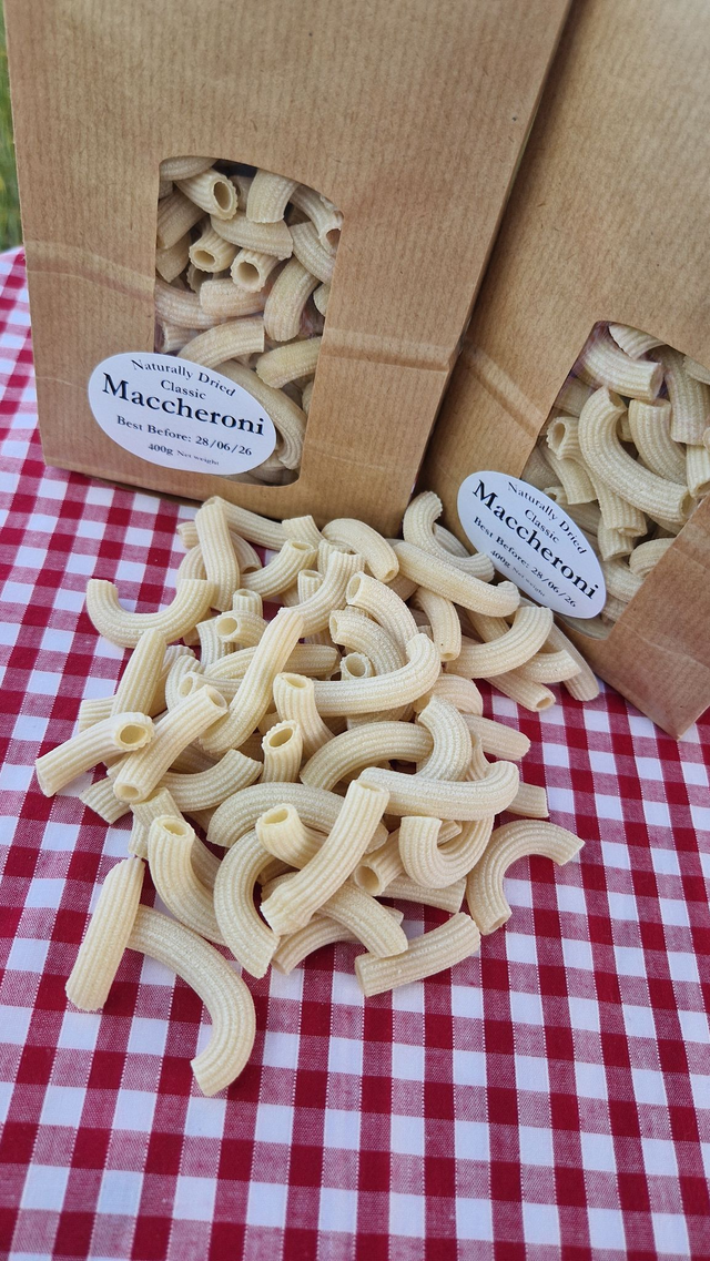 Our naturally dried Maccheroni is drawn from a bronze die, creating a rustic texture ideal for capturing and enhancing sauces. Dried for around 72 hours at a low, natural temperature, mirroring the traditional Italian methods before companies prioritised quantity over quality. Using premium Durum wheat flour, we maintain the pasta's structure for a delightful al dente bite in every mouthful. We recommend to use it in baked pasta recipes as the characteristic shapes well suits the oven cooking.